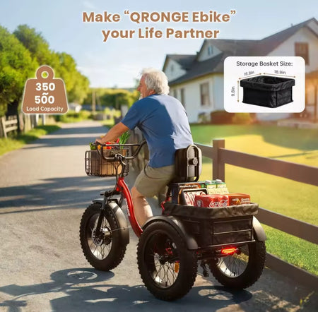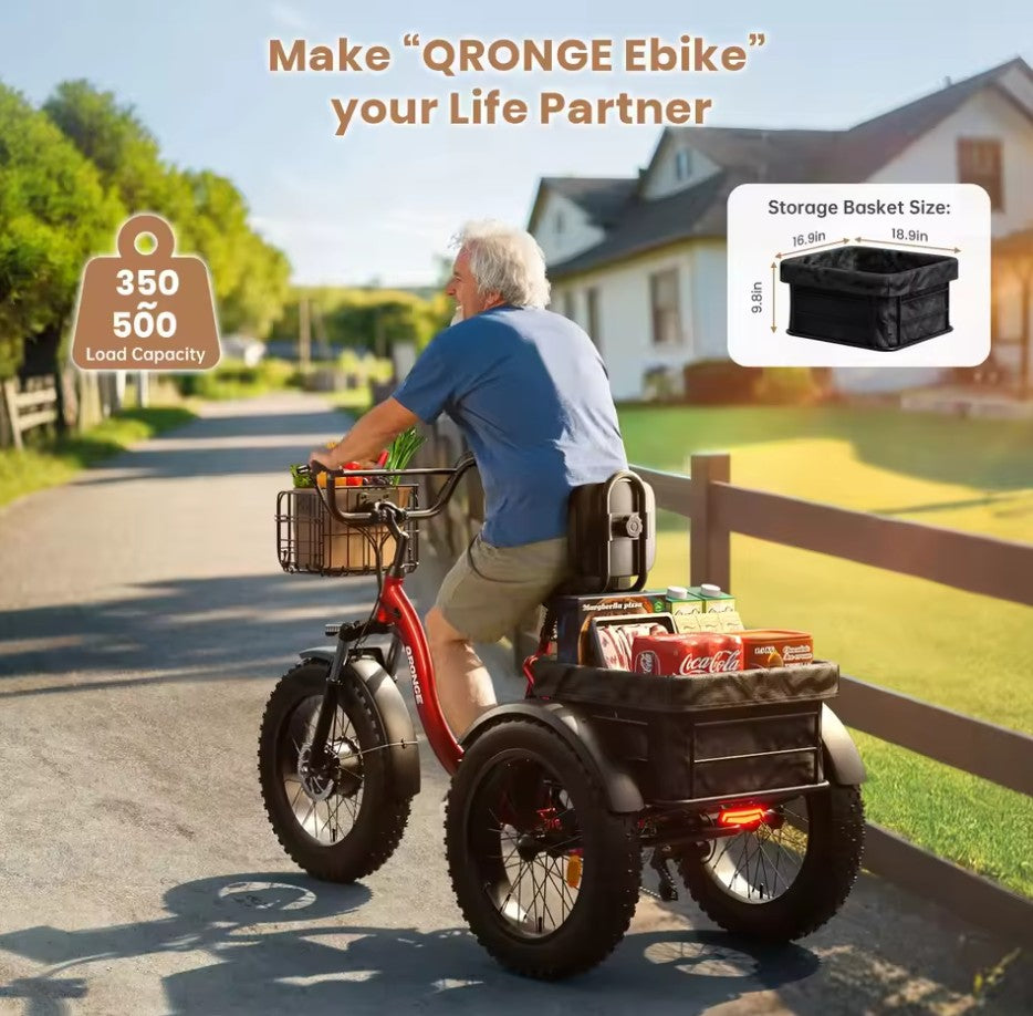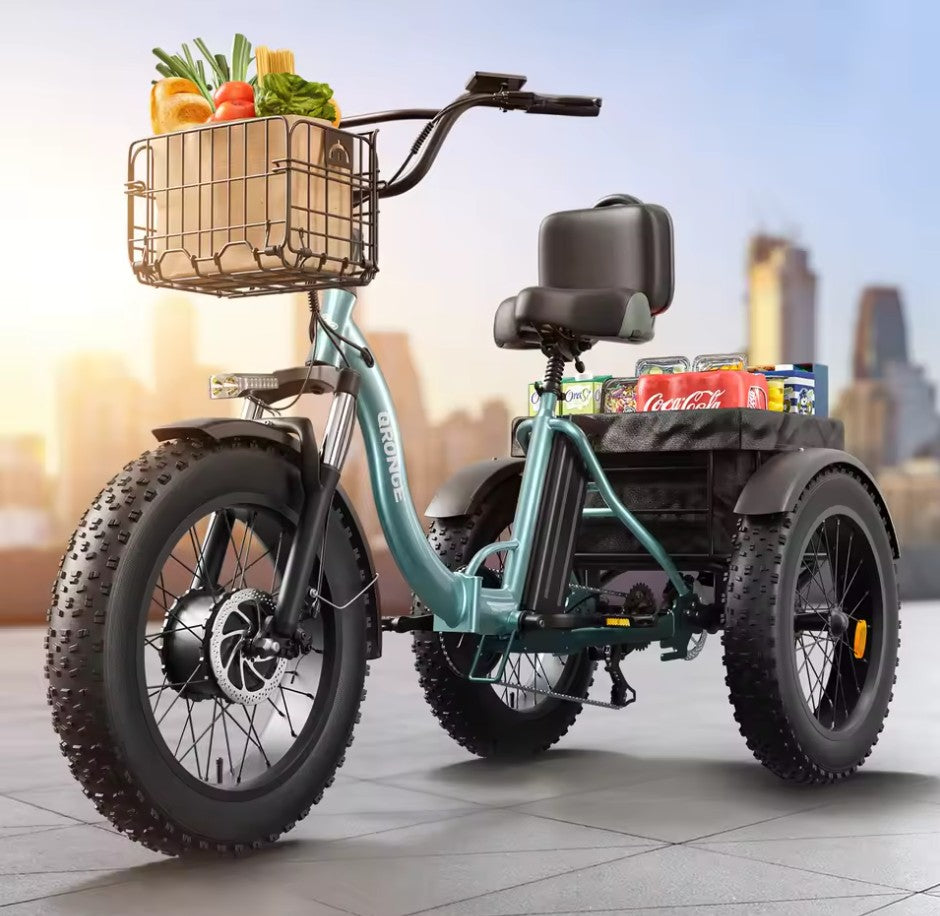 Bicicleta/Triciclo Eléctrico de Neumático Ancho con Cesta Grande de Almacenamiento 960W