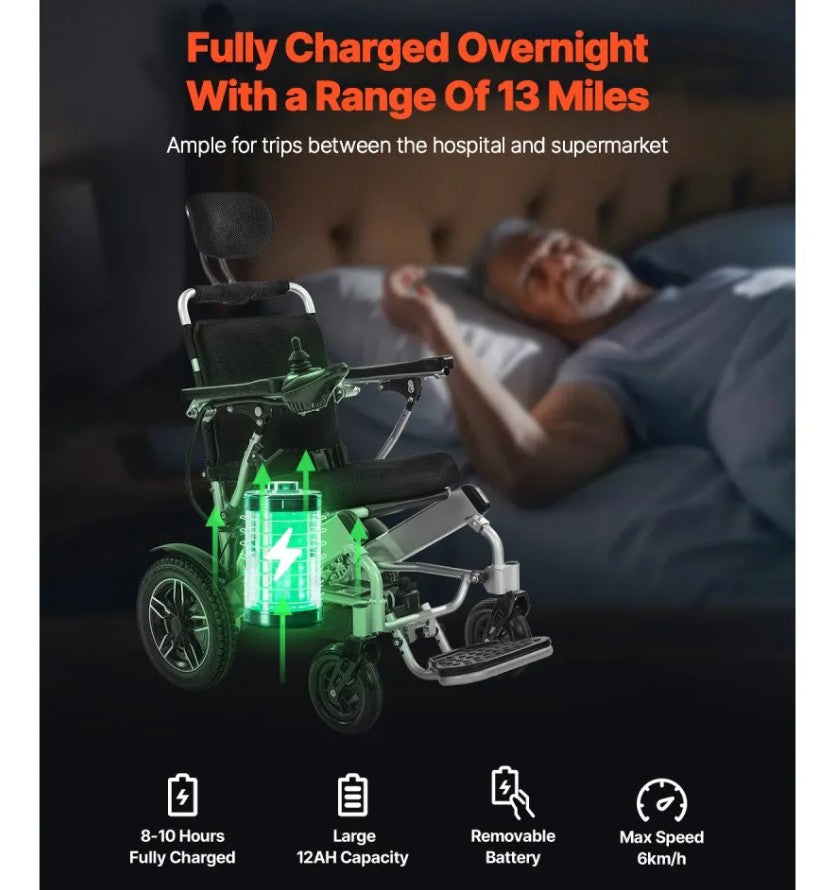 - 13-Mile Range: This portable electric wheelchair offers a 13-mile range on a full charge. With just 8-10 hours of charging, the detachable battery. Max speed 6km/h (3.7mph).