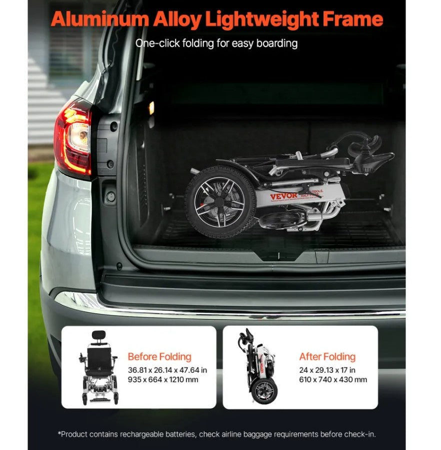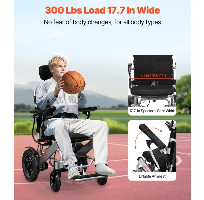 - 300lbs Weight Capacity: Supports up to 300lbs (136kg) with a spacious 17.7-inch (45cm) seat for comfort and stability. The sturdy metal frame ensures long-lasting durability, making this electric wheel chair ideal for everyday use.