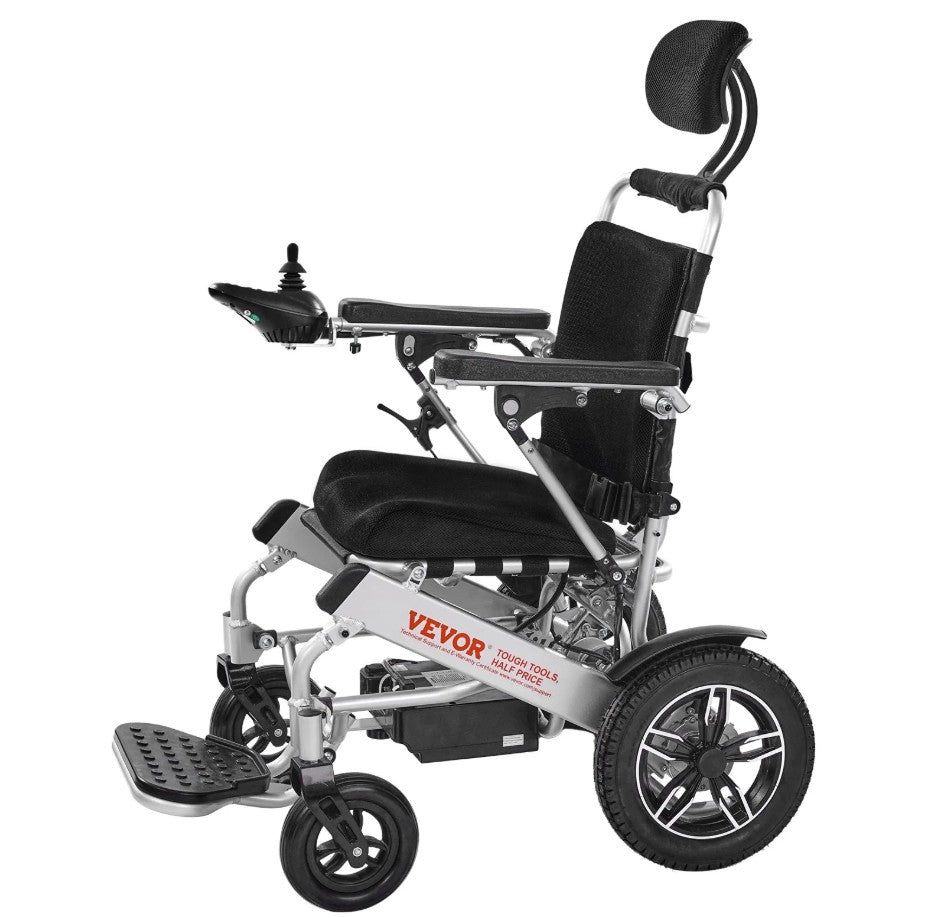 - 12-Inch Solid Tires: Equipped with puncture-proof 10-inch solid tires, this power wheel chair provides excellent ability to climb slopes of 6° or 9°, the deep tread pattern enhances grip.