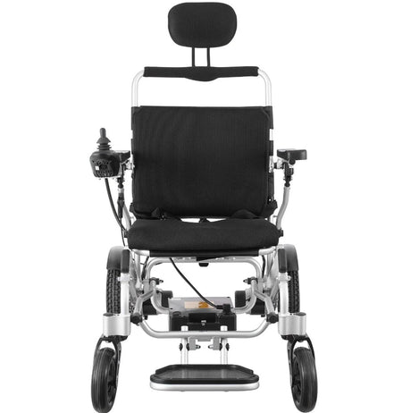 This electric wheelchair combines robust performance with practical portability. Featuring a reinforced aluminum alloy frame, it accommodates users up to 300 lbs while maintaining a compact 20-inch width for enhanced maneuverability. The foldable design enables convenient transport and storage without sacrificing capability. An adjustable backrest provides customized comfort for extended use, while the all-terrain construction ensures reliable performance across varied surfaces.