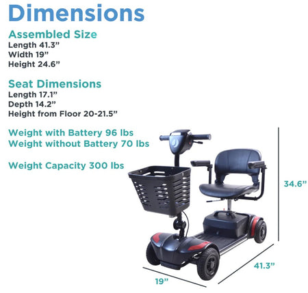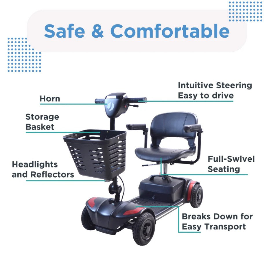 Removable Rechargeable Battery: Includes a removable battery designed to provide consistent power for everyday mobility needs.